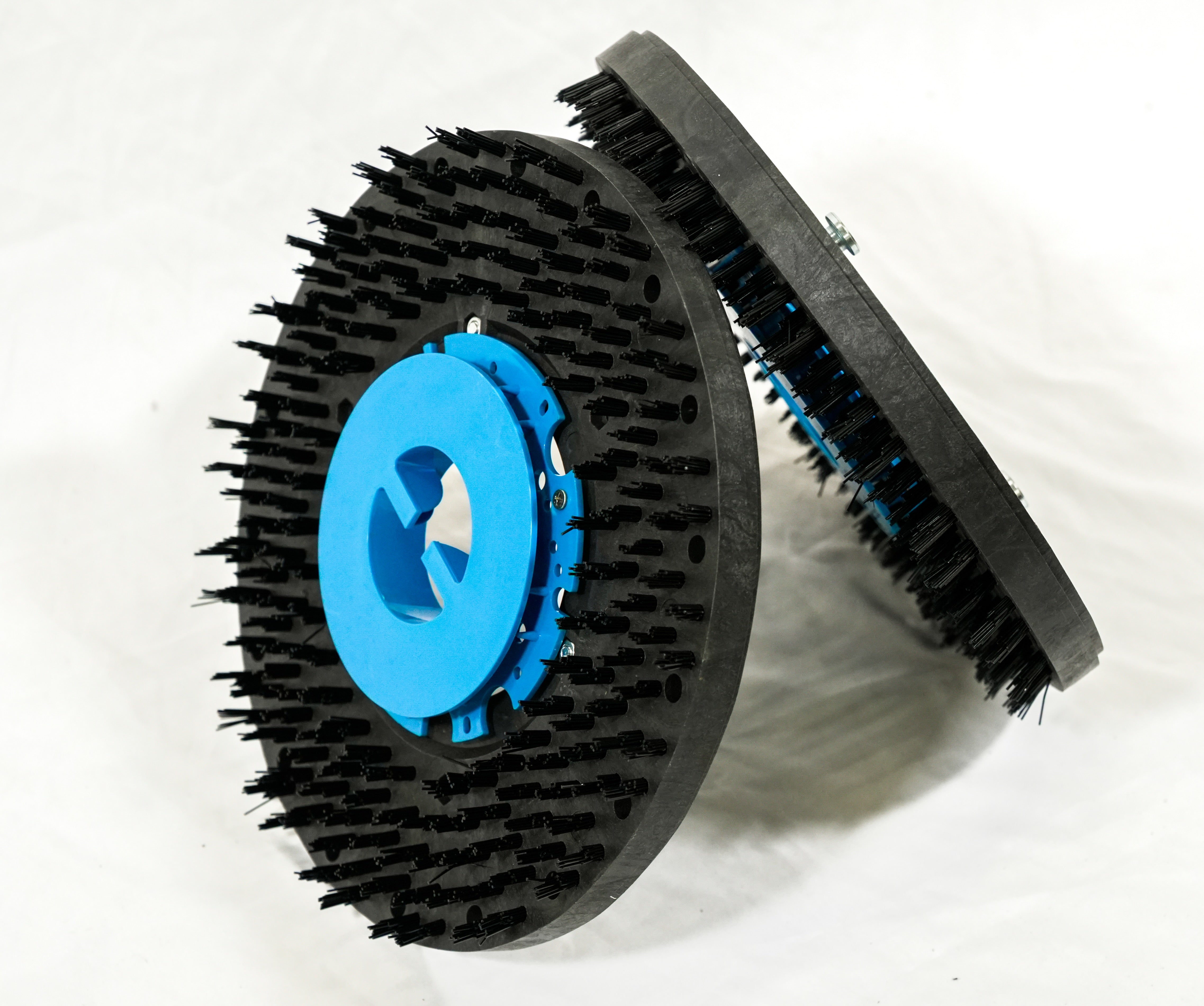 Die Treibteller sind aus hochwertigem, verschleißfestem Kunststoff gefertigt und verfügen über robuste Halteelemente, die die Pads sicher fixieren. Dadurch entsteht ein gleichmäßiger Anpressdruck über die gesamte Arbeitsbreite – ideal für gründliche Reinigung auf unterschiedlichsten Bodenbelägen, ob Industriehalle, Werkstatt oder Lagerfläche.