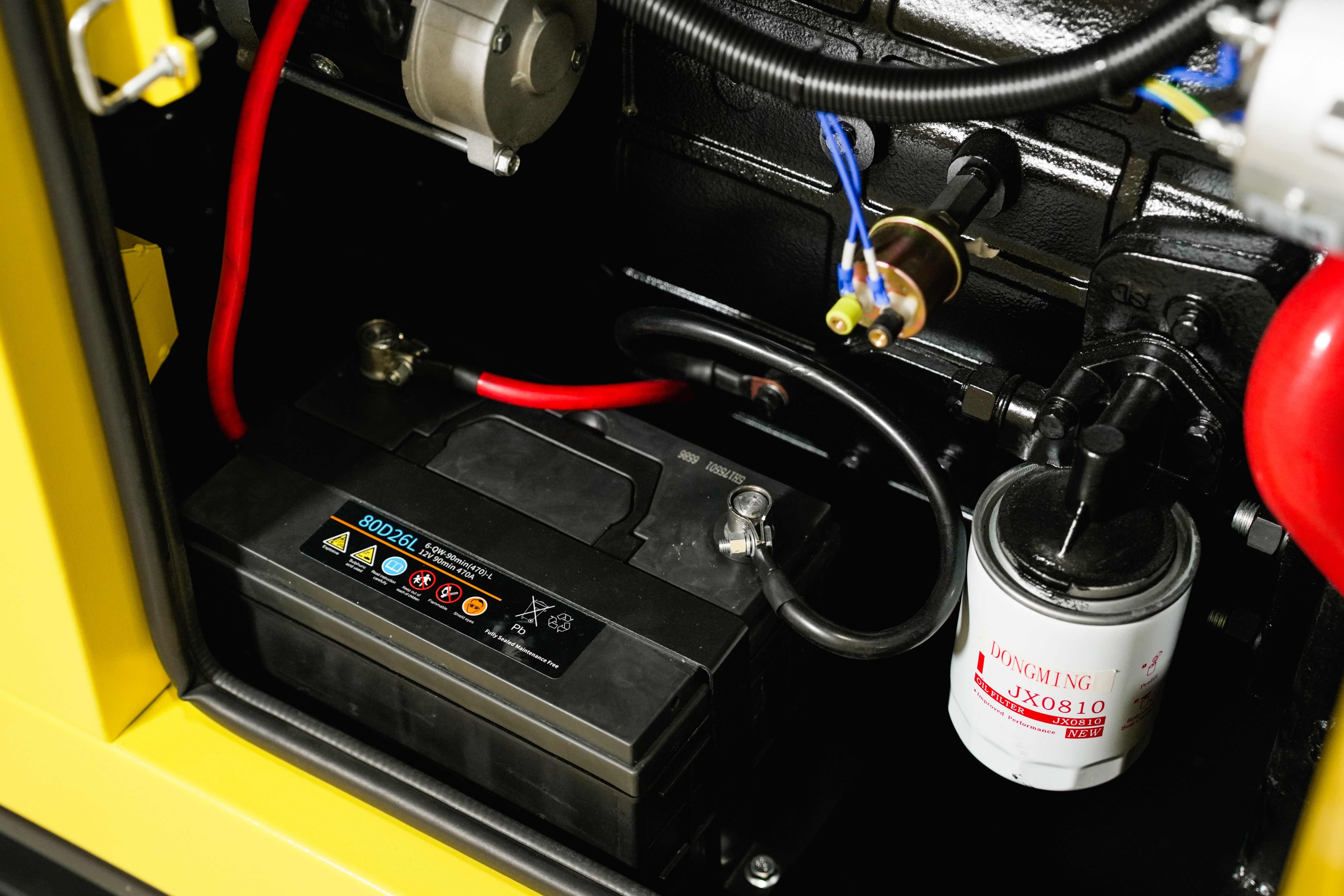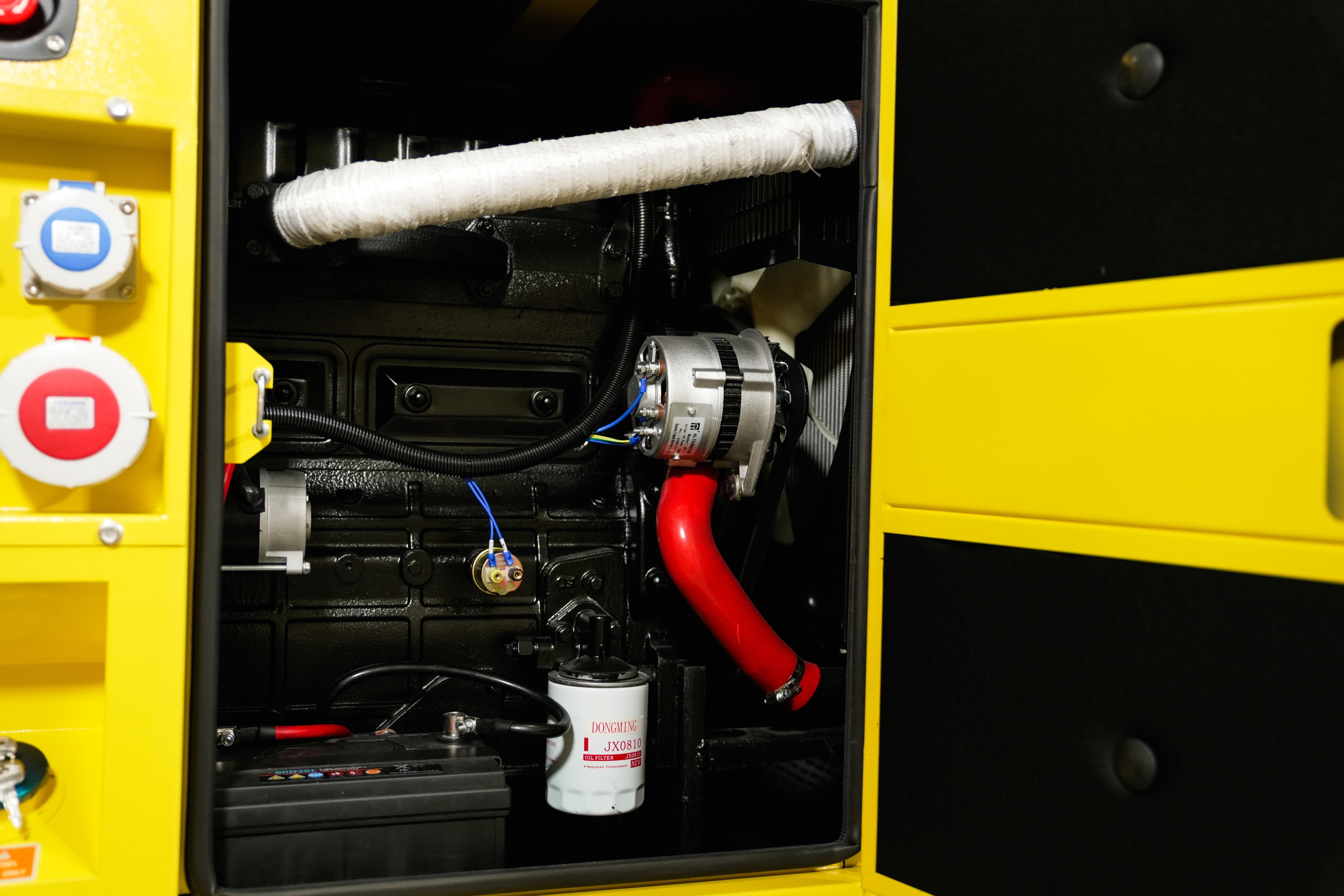 Die Funktionsweise ist vergleichbar mit der eines Fahrzeugs: Der Dieselmotor erzeugt Bewegungsenergie, die vom Generator in elektrische Energie umgewandelt wird – ähnlich wie bei einer Lichtmaschine im Auto. Der erzeugte Strom steht dann direkt über die Steckdosen zur Verfügung.