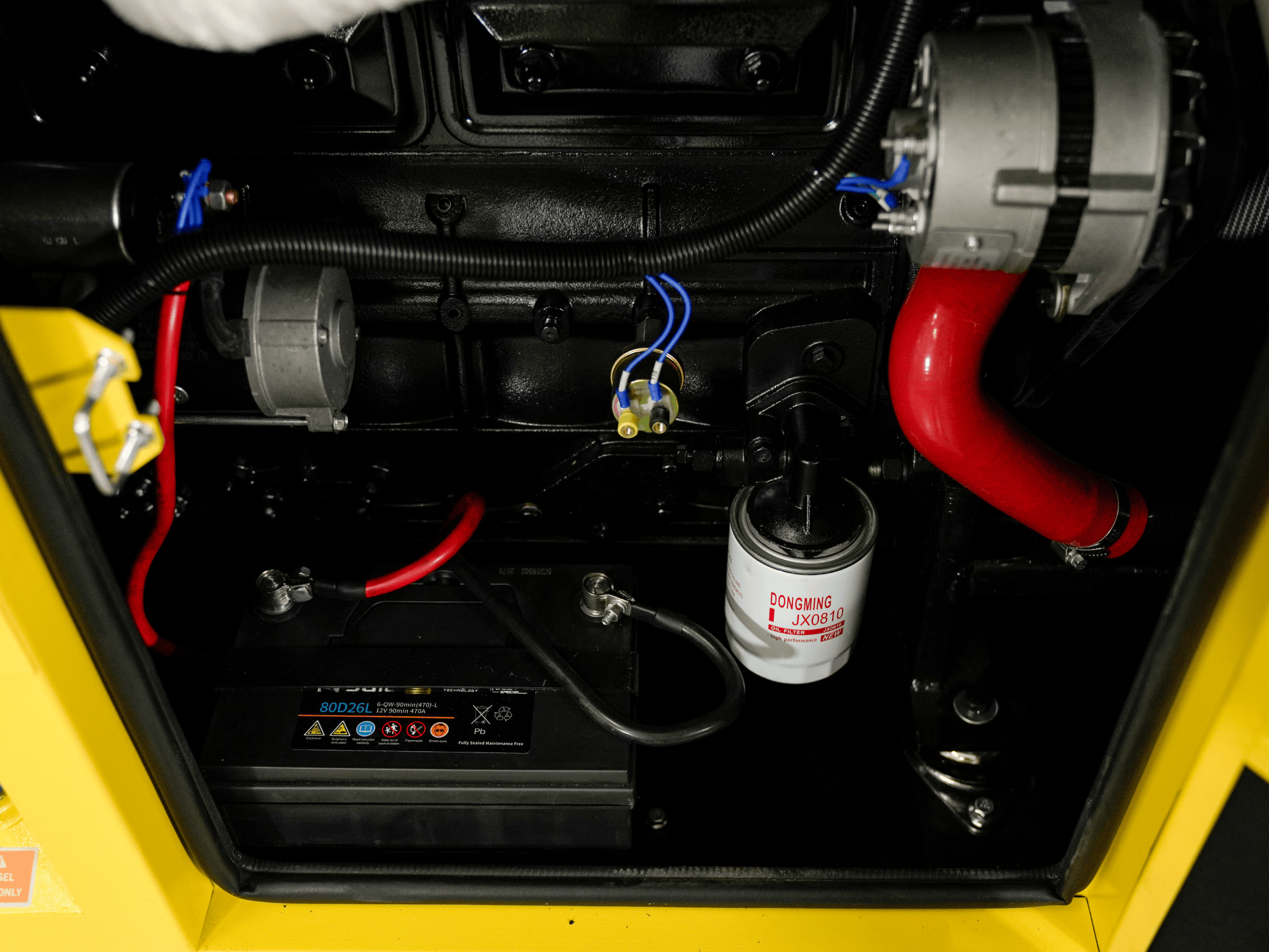Die Funktionsweise ist vergleichbar mit der eines Fahrzeugs: Der Dieselmotor erzeugt Bewegungsenergie, die vom Generator in elektrische Energie umgewandelt wird – ähnlich wie bei einer Lichtmaschine im Auto. Der erzeugte Strom steht dann direkt über die Steckdosen zur Verfügung.